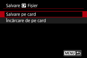 Încarcă un fişier imagine personalizată de pe un card. Selectaţi fişierul pentru încărcare, apoi selectaţi [OK].