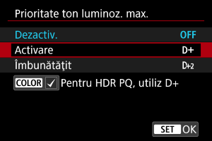 : Prioritate ton luminoz. max.] este setat la [Activare] şi nu poate fi modificat când setaţi [