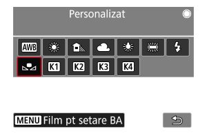 Balansul de alb (BA) este pentru a face ca zonele cu alb să fie albe. În mod normal, setarea Auto [] (Prior med amb) sau [