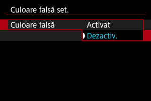 Afişare culori false este disponibil pentru imaginile de pe ecranul aparatului. Pe următoarele tipuri de monitoare externe, este afişată imaginea efectivă.