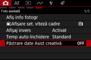 Prin păstrarea setărilor Asistenţă creativă folosite în modul [], puteţi sări peste etapa în care selectaţi efectul din nou la următoarele înregistrări.