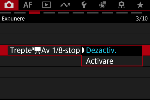 Selectaţi [: Trepte Av 1/8-stop] ().