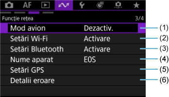 - Cât timp sunteţi conectat prin Wi-Fi, funcţia de oprire automată a camerei nu funcţionează.