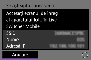 - Acest ecran nu este afişat dacă aparatul este deja conectat la smartphone.