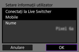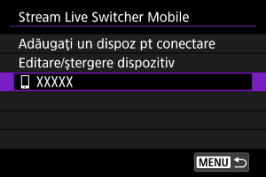 - În Live Switcher Mobile, selectaţi aparatul pentru conectare.