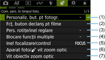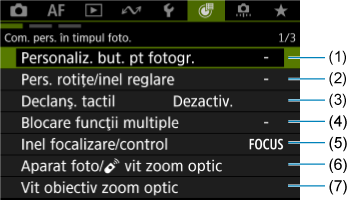 În modurile din zona de bază, sunt afişate următoarele ecrane.