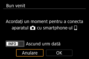 Sunt afişate instrucţiuni pentru conectarea la un smartphone dacă selectaţi [OK] când apare ecranul de setare ().
