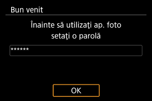 sau când camera reia operarea din închiderea automată. Introduceţi parola pe care aţi setat-o.