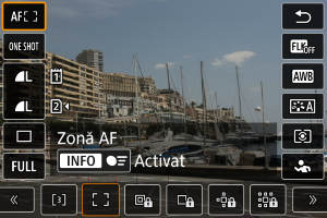 Folosiţi ecranul [Afişaj 1] aşa cum este descris în Comandă rapidă la fotografiere sau redare. Folosiţi ecranul [Afişaj 2] după cum urmează.