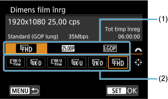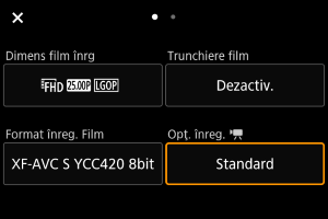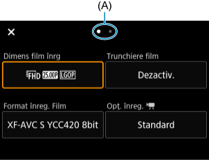 Ca la fotografiere, apăsaţi butonul pentru a accesa ecranul de Comandă rapidă. Fiecare apăsare a butonului