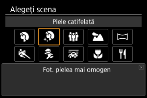 Folosiţi [] (Piele catifelată) pentru cadre care prezintă pielea mult mai frumos. Procesează imaginile pentru a face ca pielea să pară mai catifelată.