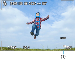 : Zonă AF] este setat la [AF zonă întreagă]. Cadre zonă AF (1) apar când apăsaţi butonul declanşator până la jumătate. Când subiectul este focalizat, punctul AF va deveni albastru.