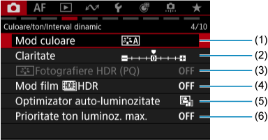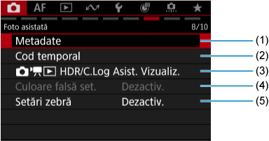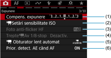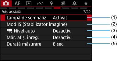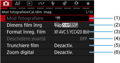 Pentru mai multe detalii despre ecranul pentru filmare, consultaţi Afişare informaţii.