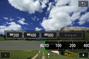 stânga sau dreapta pentru a selecta o valoare ISO. Sunt disponibile şi valorile înregistrate.