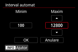 - Interval ISO folosit cu ISO Auto