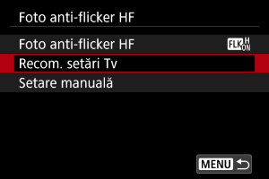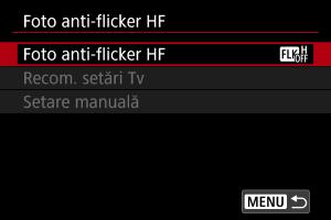 - Înainte de fotografiere anti-flicker frecvenţă mare, luaţi în calcul să setaţi [