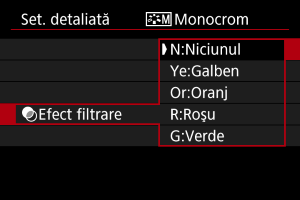 | N:Niciunul | Imagini normale alb-negru fără efect de filtru. |