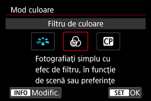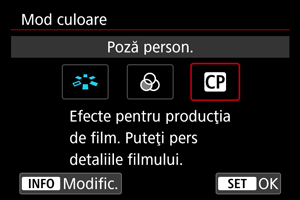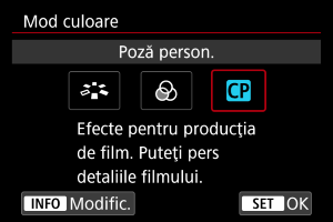 | Amplificare | –50 până la +50 | Reglează intensitatea culorii |