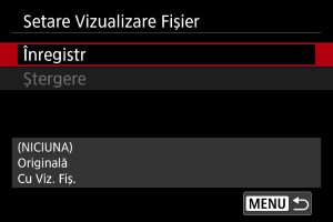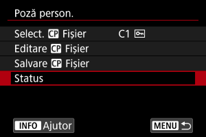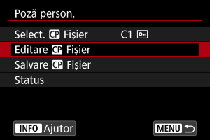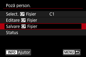 Puteţi verifica setările pentru fişierul imagine personalizată din meniul [Poză person.].