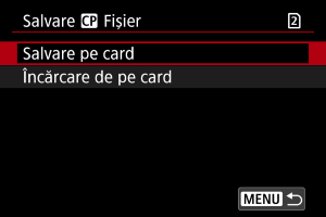 Încarcă un fişier imagine personalizată de pe un card. Selectaţi fişierul pentru încărcare, apoi selectaţi [OK].