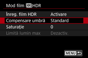 Puteţi înregistra filme cu gamă dinamică mare care reţin detaliile din zonele luminoase pentru scenele cu contrast mare.