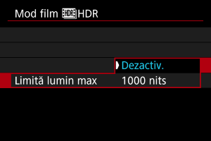 - Cu [Dezactivare], limita maximă pentru luminozitate nu este limitată. Este recomandat când veţi verifica imaginile pe un monitor care este compatibil cu afişarea la luminozitate care depăşeşte 1000 nits.