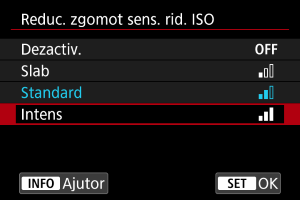 1. Selectaţi [Înregistrare: Reduc. zgomot sens. rid. ISO] (, ).