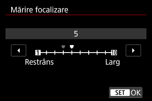 Specificaţi cât de mult să mutaţi focalizarea. Valoarea este reglată automat pentru a se potrivi valorii diafragmei din momentul fotografierii.