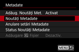Setaţi [Adăug. Noutăţi Met.] la [Activ].