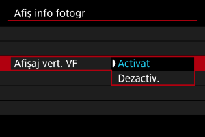 Puteţi selecta cum sunt afişate informaţiile în vizor când fotografiaţi vertical.