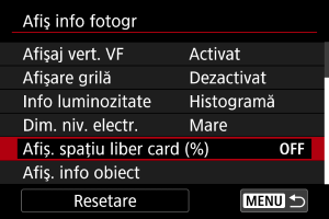 Puteţi afişa pe ecran spaţiul liber de pe card.