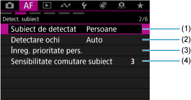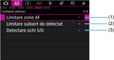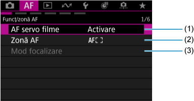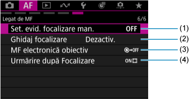 - [Mod focalizare] este afişat când sunt folosite obiective fără buton pentru modul de focalizare.