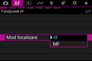 Selectaţi zona AF.