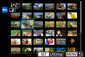 În timp ce priviţi imaginile din afişajul index, puteţi specifica prima şi ultima imagine pentru un interval pentru a proteja toate imaginile specificate.