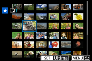 În timp ce priviţi imaginile din afişajul index, puteţi specifica prima şi ultima imagine pentru un interval pentru a evalua toate imaginile specificate.