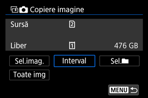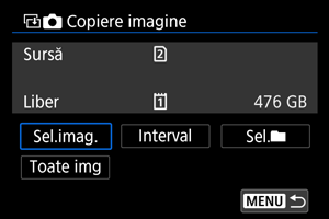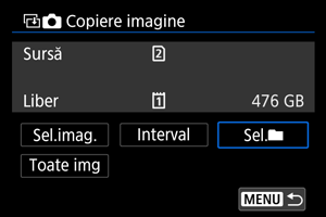 - Cu [Sel.imag.], imaginile din mai multe directoare nu pot fi copiate în acelaşi timp. Selectaţi imaginile pentru copiere dintr-un singur director pe rând.