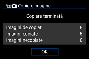 - Rezultatele sunt afişate după ce copierea este finalizată. Selectaţi [OK] pentru a reveni la ecranul de la pasul 2.