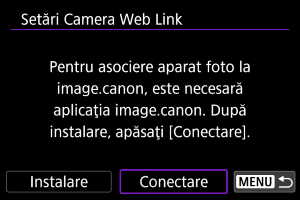 - Dacă nu a fost instalată deja aplicaţia dedicată, selectaţi [Instalare].