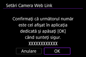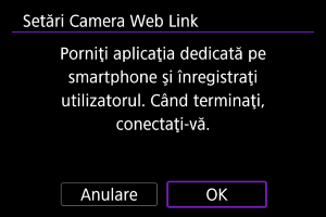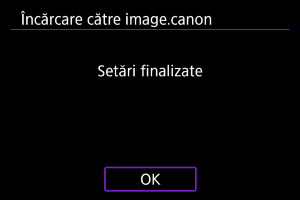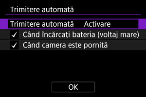 - [Când camera este pornită]: Trimiterea automată începe atunci când aparatul este pornit.