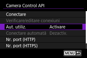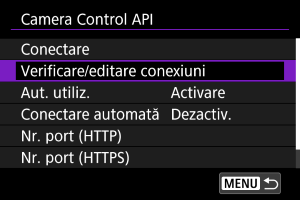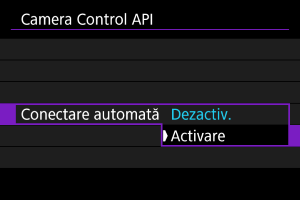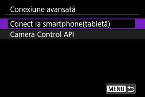 Înainte de a utiliza o aplicaţie sau alt produs care utilizează Camera Control API (CCAPI),* pregătiţi camera pentru controlul CCAPI conectând-o la smartphone-ul, tableta sau calculatorul pe care îl veţi utiliza.