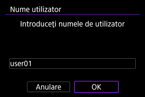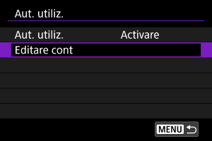 - Dacă aţi selectat [Activare], introduceţi [Nume utilizator] şi [Parolă] în [Editare cont].