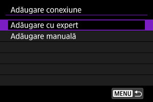 - Pentru a configura detaliile conexiunii, selectaţi [Adăugare manuală].