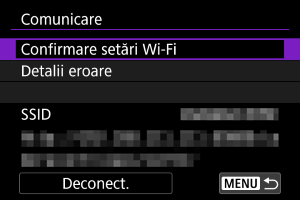 Când apare o eroare la conectarea Wi-Fi, puteţi verifica detaliile erorii ().
