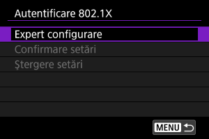 Dacă selectaţi [Autentificare 802.1X] vă permite să setaţi, verificaţi sau ştergeţi setări de autentificare 802.1X, folosin un expert de setare.