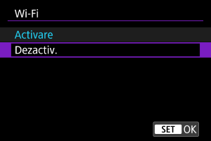 Setaţi la [Dezac.] când utilizarea dispozitivelor electronice şi wireless este interzisă, precum în avioane sau spitale.