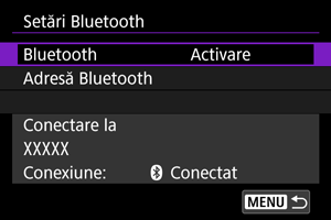 Puteţi verifica numele şi starea comunicării pentru dispozitivul cuplat.