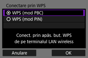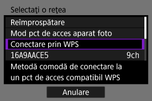 Selectaţi [Conectare prin WPS] pe ecranul [Selectaţi o reţea].