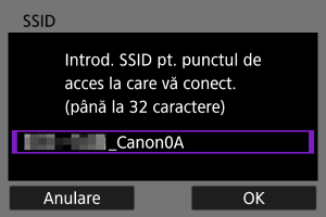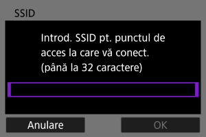 Conectaţi la un punct de acces prin introducerea (sau ESS-ID).