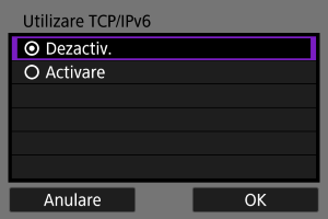 - Selectaţi [Activare] pentru a folosi IPv6.