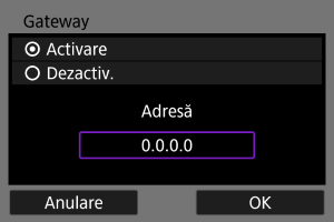 Pentru a folosi un gateway, selectaţi [Activare], apoi selectaţi [Adresă].